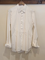 シャツの袖口を二重に折り返して、カフスボタンで留めるタイプのシャツのご紹介です。